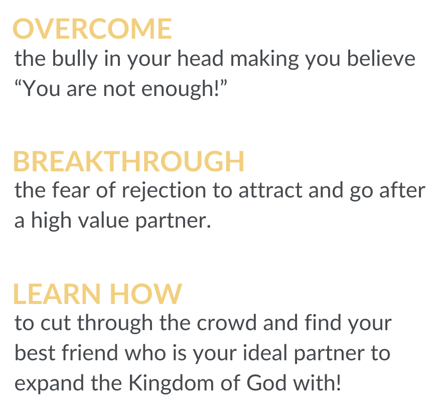 Unlike the many books you may have read, KC comes with the 2-Month Single-To-Married Mastermind, which includes a cohort experience with fellow Christian singles and weekly Zoom group coaching with my wife, Debra, and I. This sets you up for success as you've never experienced it before with an easy-to-follow calendar, support, accountability, and coaching.